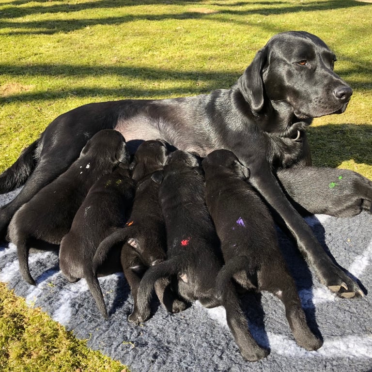 Mit der Labrador-Zucht haben wir begonnen, weil wir unsere Alva charakterlich so zauberhaft finden (natürlich ist sie auch wunderschön!) und denken, diese Eigenschaften dürfen sich gerne weitervererben. Außerdem erhielten wir von befreundeten Jägern die Rückmeldung, dass sie gerne Nachkommen von Alva hätten...