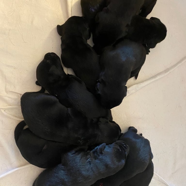 Am 5.2.2022 hat unsere Alva 7 gesunde Welpen zur Welt gebracht! Allesamt sind schwarz, denn Alva vererbt nur schwarz (schwarz dominant). Es waren 2 Hündinnen und 5 Rüden. Für alle 7 haben wir wunderbare Familien gefunden, wie man bei unserem Sommergrillen sehen kann.